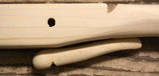 Se puede ver que el tumor permite que la palanca para que gire libremente sin tocar el borde en ángulo sobre el stock. La palanca del gatillo también curvas hasta resto alineada con el agujero de la empuñadura y gatillo. El borde inferior del gatillo se curva ligeramente para dar el dedo en el gatillo un buen agarre.