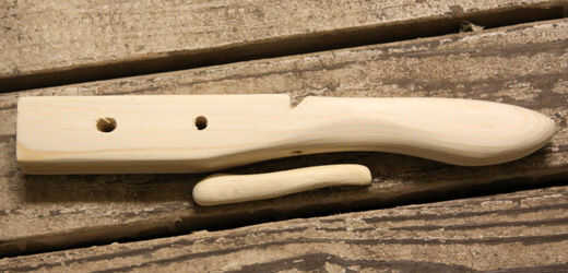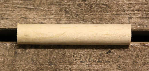 Corte una clavija de 3/4" 4" de largo. Esto se convertirá en el gatillo. Roble, arce, abedul y otras maderas densas hacen una buena opción para esto. Si la madera es demasiado suave, simplemente podría romper contra la presión de la cuerda cuando el arco es disparado.