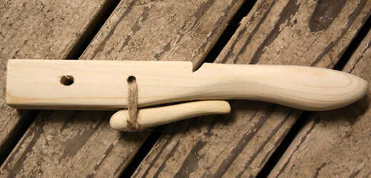 Con una cuerda o hilo fuerte, envuelve dos veces el gatillo para la acción. Esto Tire firmemente y asegúrese de que la palanca se moverá hacia arriba y hacia abajo fácilmente. Si se desliza la cuerda, hacer la hendidura más profunda.