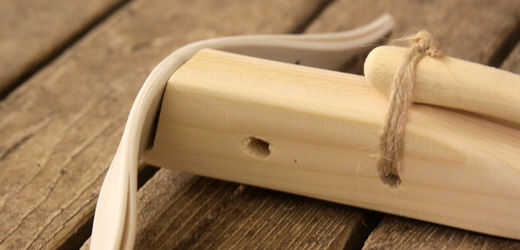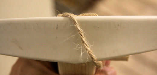 Una vez que el arco y la acción han sido envueltos tres o cuatro veces, hagan tres o cuatro nudos de rizo delante de la proa. Asegúrese de que el arco quede alineada con la culata con sin espacios antes de atar los nudos finales. La envoltura debe ser apretada.