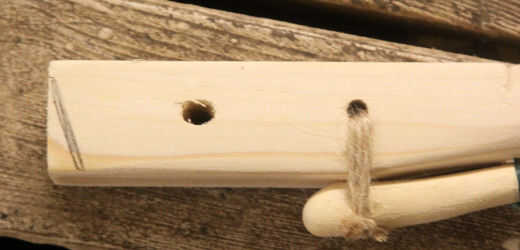 Corte una espiga de 5/16" de 4 pulgadas de largo. Deslice el orificio más cercano a la parte delantera de la culata. Debe ser suelto para que el pasador se puede sacar en lugar de amarre deshacer para quitar el arco.