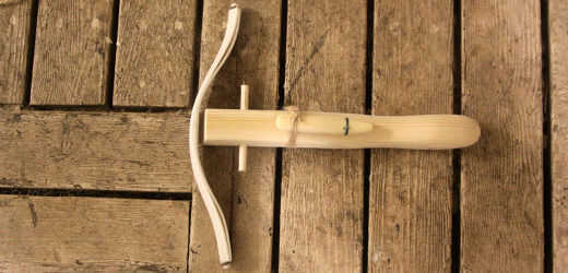 Con el ensamble del gatillo terminado ahora es tiempo para fijar el arco a la acción. Mantenga el arco en la parte delantera de la culata por la cadena para que pueda ver qué tipo de ángulo se necesitarán para asentar perfectamente el arco. El borde no afilado del arco va para arriba.