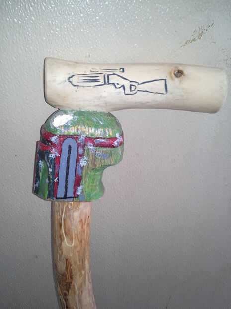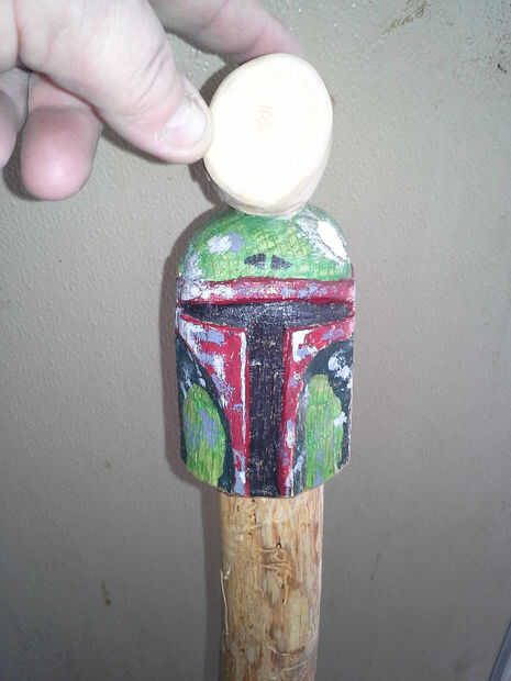 4 - después de conseguir todo alisado trazó el diseño de Boba Fett en la paz redondeada de madera.