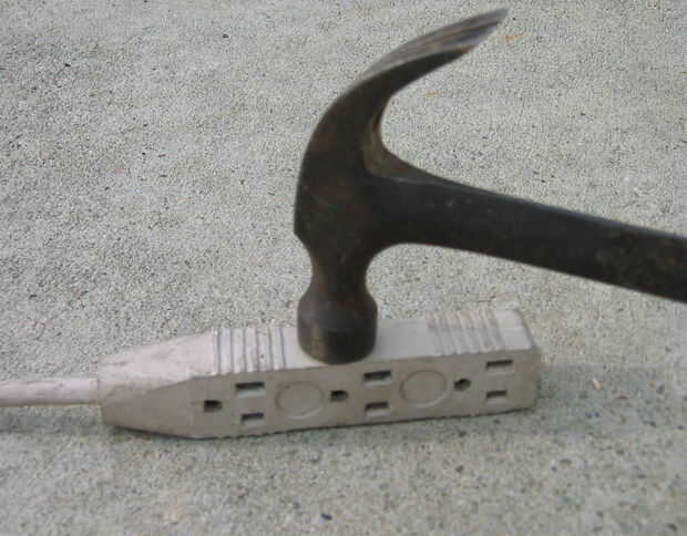 Entonces golpeó en el lado con un martillo para doblar los contactos juntos un poco.