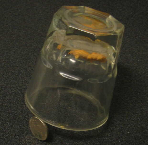 Un ratón se arrastran dentro de la Copa y derribar saltando en la mantequilla de maní.