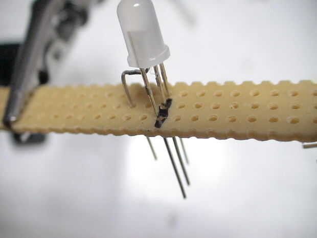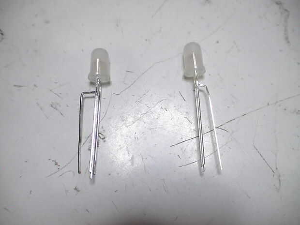-Una vez que tienes un par de LEDs, doble sus pernos R-G-B hacia adentro hacia los demás y de la soldadura.
