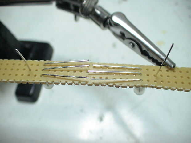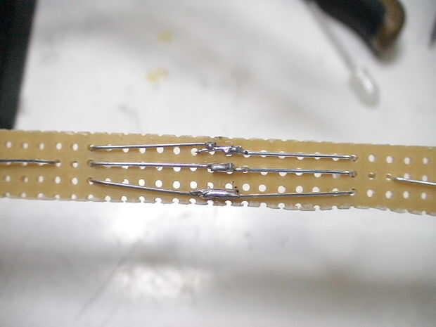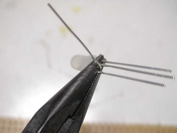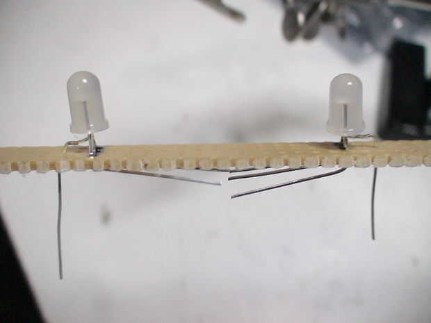 -Ajustar los cables para que no se toquen. Más tarde una gota de pegamento caliente les mantendrá separados.