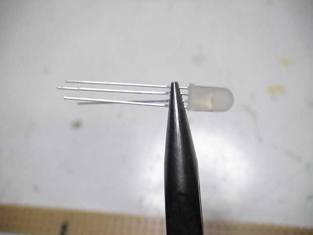 -Coge un LED RGB y sosteniéndolo cerca el pliegue superior encima de la tierra conducen a un 90deg. ángulo.