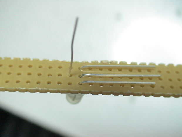 -Entonces coge el cable de tierra después de la primera curva y curva hacia abajo, paralelo al resto de los pines.