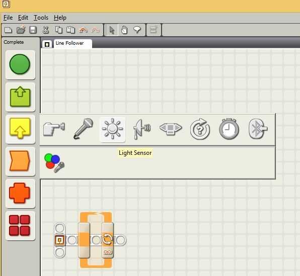 Este programa permitirá su NXT a moverse en línea recta con la condición de una línea negra bajo el sensor de luz, el programa se puede instalar desde este enlace: