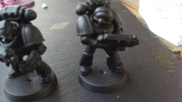 en esta etapa usted aerosol negro mate (yo usé caos negro de la gama de pinturas citadel). Esto actuará como el principal color de la armadura, así que es útil!
