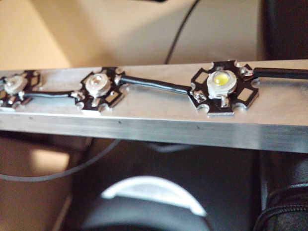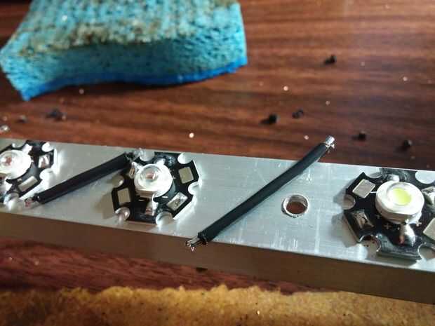 lata los terminales de la estrella led que va a utilizar también estaño el extremo de los cables