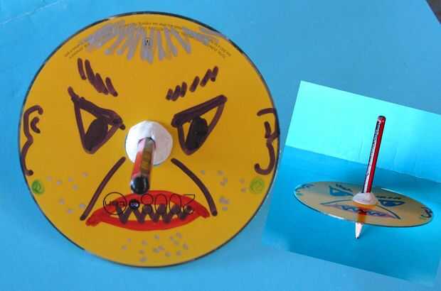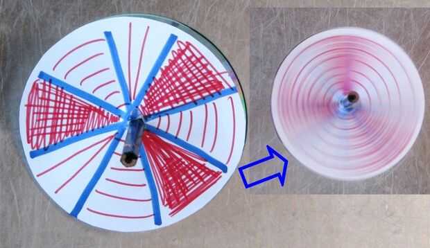 5. experimente con sus discos de papel grueso de tapas-hace girar para poner en la parte superior, con diferentes patrones, rayas, irradiando patrones, espirales, etc - o dibujar los patrones en el lado brillante con un marcador de DVD - y ver qué pasa al hacer girar el disco