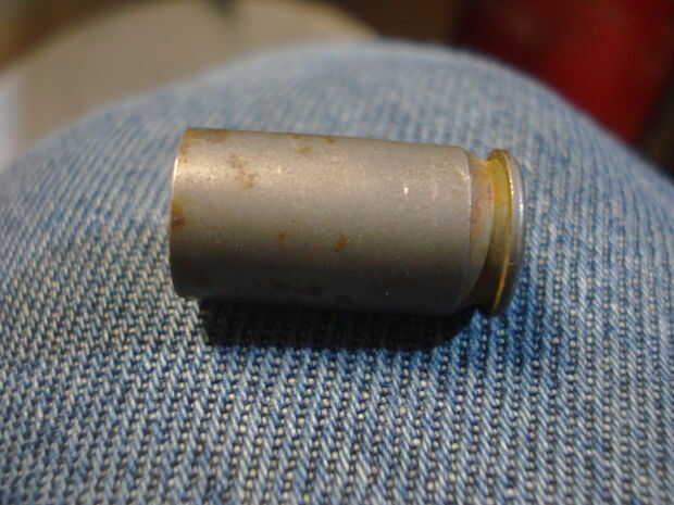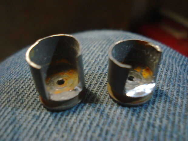 En primer lugar, cortar sus dos restantes.45 conchas a la mitad, poco. Uno terminó más corto que el otro, para mí, pero realmente no es notable.