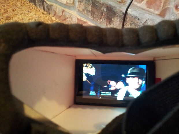 Las gafas consisten en una pantalla LCD de 4,3 pulgadas, tablero de la espuma, gafas de esquí y cinta adhesiva para conductos (color)