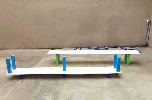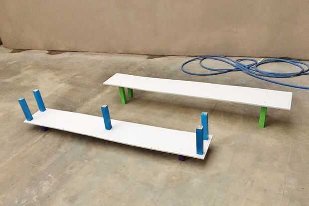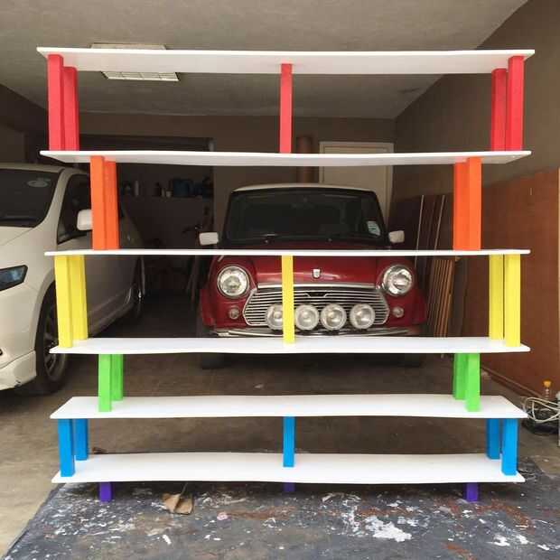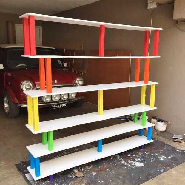 4 ahora coloca cada estante encima de la otra como se muestra en la imagen y enrosque de la parte inferior.