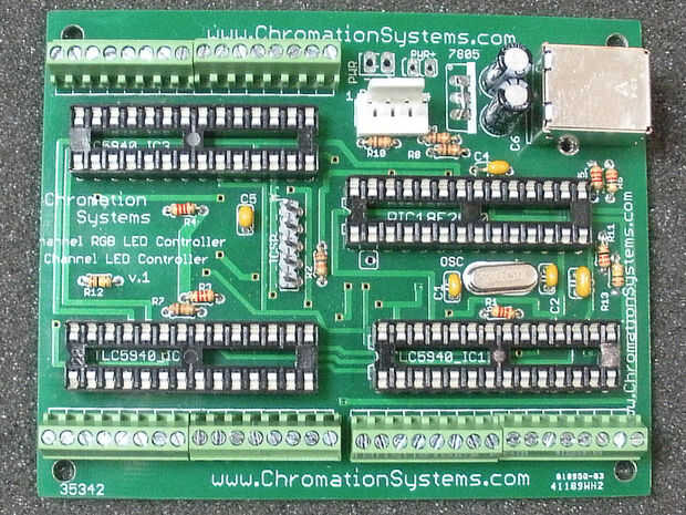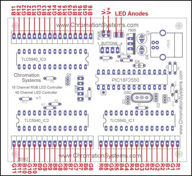Conexión de LED: Este dispositivo utiliza LEDs de ánodo común, no hay puntos de conexión para los ánodos entre las cabeceras, los ánodos deben ser con cable por separado (en paralelo) y conectados a la tensión de la fuente o el PWR + posiciones en la PCB. O terminales rosca o cajas de cabezales o soldadura directa puede utilizarse para conectar los LEDs al controlador, se prefieren los terminales.