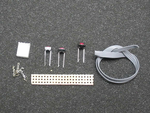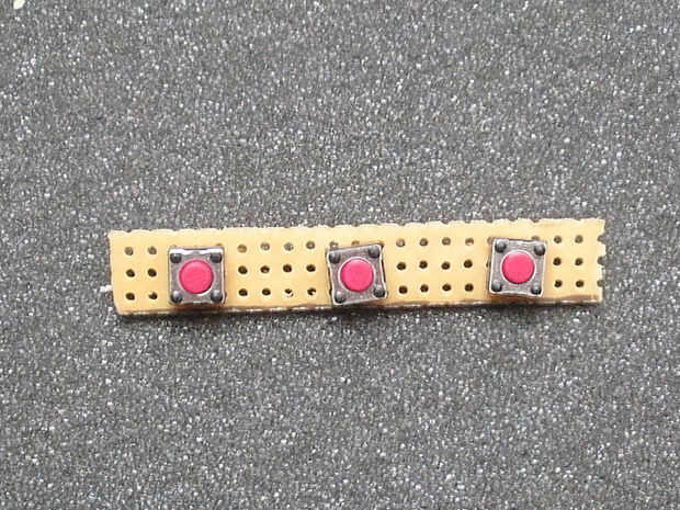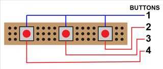 • Colocar los botones en el perfboard, los cables deben ir en los orificios exteriores no los mediados agujeros. Siga el diagrama si usted está planeando sobre el uso de la plantilla para taladrar.