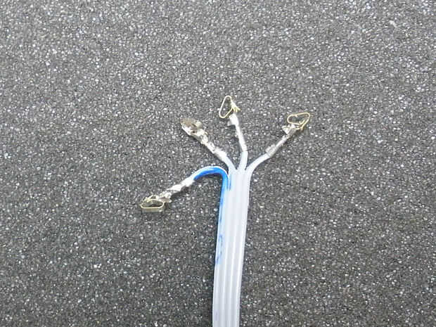 • Doblar todos los cables de un lado para que pueden conectar, un pedazo del puente se necesita alambre. Para un plomo de 3 todos los interruptores están en paralelo. Les de la soldadura a