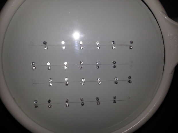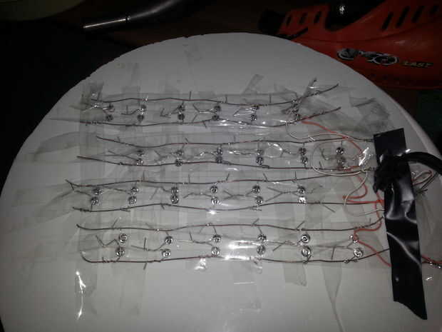 48 agujeros en el plástico y poner los leds en cuple para dividir los 15 voltios a 1,5 voltios para dos leds