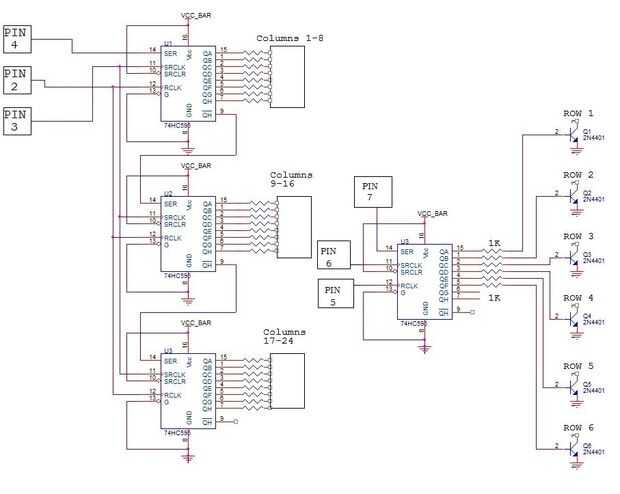 y daisy cadena cambio registros con pin de reloj común a las columnas de impulsión