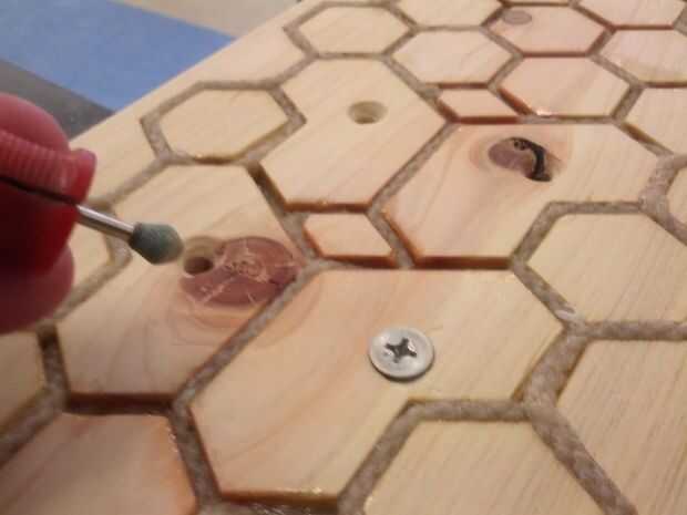 Para hacer la cabeza de "hard ware" (los pernos de fijación y la Junta) entran en la superficie de la Junta, expandir la entrada de los agujeros solo suficientemente las cabezas encajen en la herramienta rotatoria.