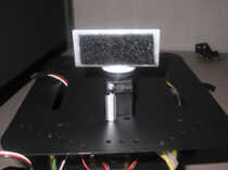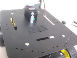 Decidí pegar el sensor al montaje con Velcro. El servo fue unido al agujero de servos en la parte superior de la pantalla mediante el uso de los separadores, dos tornillos y dos tuercas.