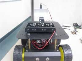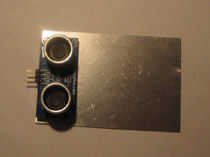 Vamos a utilizar la pieza de aluminio que viene con la placa para hacer un soporte para el sensor Ping. Ponga el sensor en el pedazo de aluminio y marcar con un rotulador. He utilizado tijeras regulares para cortar el aluminio.