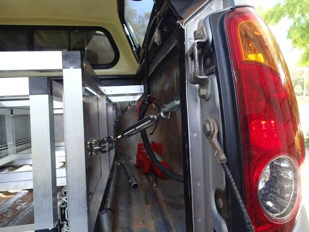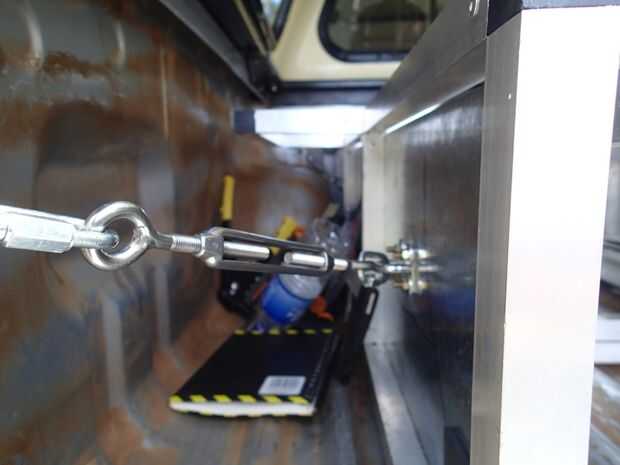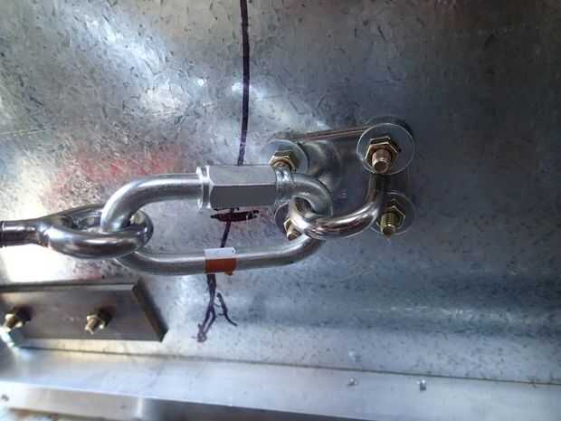 Para asegurar esto al vehículo utilicé planchas de ojete con cosas reviradas (no está seguros del nombre real), con grillete de tornillo. También me aseguré de utilizar algunos acero espesor en la placa de orificio lateral opuesto para asegurarse de que la presión se extendió a una distancia mayor. Necesita un endurecido broca para esta parte y tomará mucho tiempo hacer cada agujero (15 minutos). No tengo una prensa del taladro, solamente los taladros sin cuerda. Esta fue una experiencia desagradable y aburrida por no decir más.