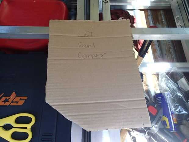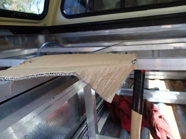 Para ello utilicé cartulina doblada y cortar el contorno exacto de la bandeja de ute. Luego usar el cartón como una plantilla en la madera contrachapada.
