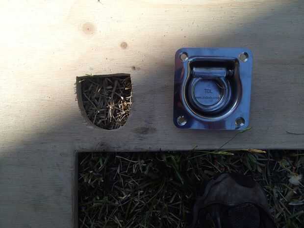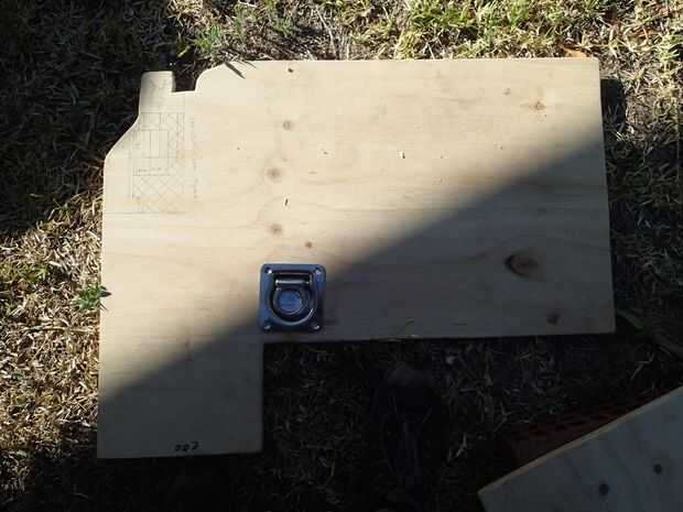 Utilice los puntos de amarre como una plantilla, traza la forma del agujero que usted necesita sobre la madera contrachapada.
