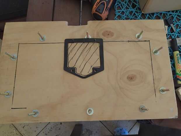 Estas manijas se vinieron con una Junta de goma que he utilizado como mi plantilla de corte. Haga el hueco como se describe antes y asegure con tuercas y pernos resistencia alta.