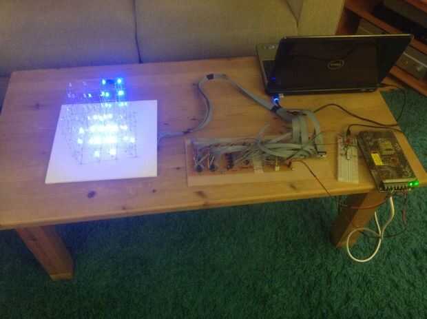 Esto me inspiro totalmente pero sabiendo a mi esposa me mataría si asumió el control la casa con breadboards que decidí escalar hasta un 4 x 4 x 4 cubos RGB.