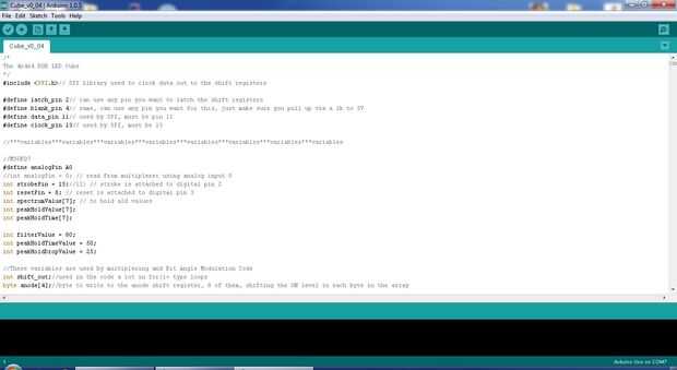El cubo ahora funciones con un modo que muestra un espectro impulsado por la entrada de audio y varias pantallas conducidos no audio que han sido cribbed 8 x 8 x 8 original de Kevin Darrah cubo de código, además de algunos de mis propios.