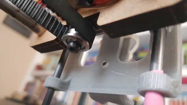 - Colocar una polea GT2 en cada motor paso a paso pero no apriete el perno de grub todavía.