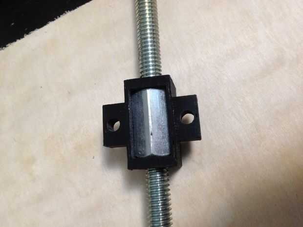 Aquí es un sostenedor de la tuerca de acoplamiento impresa 3D que he utilizado para el eje z. 5/16"-18, 7/8" largo de acoplamiento tuercas calcen bien en este soporte. Que atribuye al carro del eje de generación personalizada usando dos pernos a los lados. Este soporte tuerca puede utilizarse también como una unidad de cnc barato.