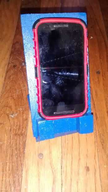 Por lo que el titular del teléfono se coloca juntos. ¿Es lo torcido? Sí y ahora sería un buen momento para recordar a su cónyuge usted es humano y no una máquina, y que funcionará incluso si no es perfectamente cuadrado. Pinté mi puesto que me gusta este color azul y cubre las marcas del lápiz bien. En la foto no es donde utiliza adhesivos de espuma como bandoleros para dar al soporte un poco el amortiguador y agarre. Todavía tiene una abertura para el cable de carga, es una exhibición agradable, y me costo unos 45 minutos de mi vida.