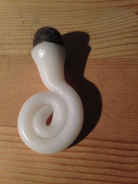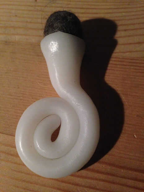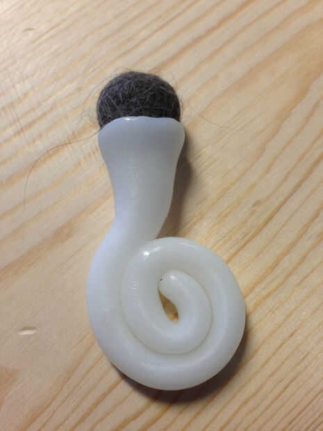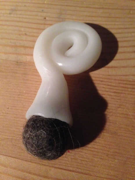 Me calienta la InstaMorph y luego la forma con la mano en un mango rizado. Entonces pegué una bola hecha de pelo de perro hasta el final.