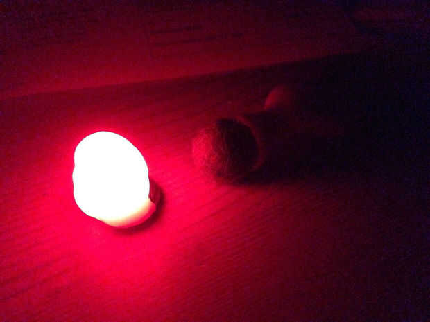 Cuando el InstaMorph era cálido y suave, envuelto alrededor de un LED throwie. El LED ahora arroja una gran luz difusa.