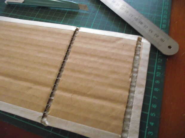 3. Retire el superior pocas capas de cartón de los rectángulos, así que tienes dos trincheras. Estos bloqueará el soporte en su lugar - uno para un alto ángulo, uno para un ángulo bajo.