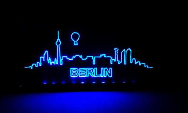 Hacer un grabado pequeño cristal acrílico iluminada del borde-del horizonte de la ciudad de Berlín (Alemania) como un regalo.