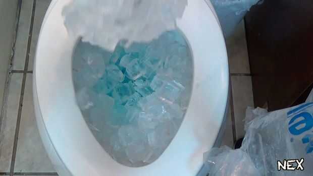 Puesto que ya se encuentra en el baño por qué no otra broma, esta vez todo lo que tienes que hacer es levantar el inodoro tapa y mudo toda la bolsa de hielo en el interior, hacia la parte superior. Se podría pensar esto no tiene sentido pero Piénsalo más, si la víctima va para su descarga por la mañana, tendrá que sacar todos los hielos para poder lavar.