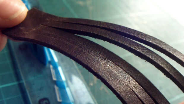 Mi piel es 2 cm de ancho, así que medir y cortar mis tiras para ser de 4 milímetros de ancho. No te olvides de dejar al menos 1,5 cm en cada extremo de modo que puede colocar un cierre en.