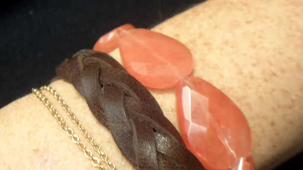 gustaría recomendar una nueva clase de cómo hacer pulseras de cuero y bolas. Visto desde el aspecto de la pulsera de abrigo de cuero con cuentas, usted pensará que sus métodos de elaboración son muy complejos.Tres capas de granos son entrelazadas por