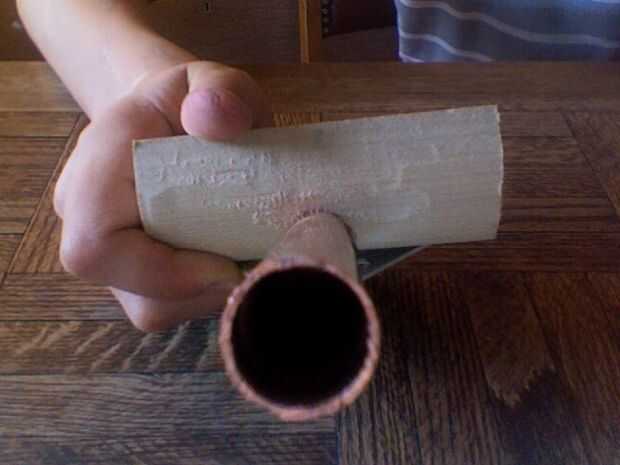 Este pequeño cañón es alimentado por estallar un diafragma de goma con una bomba de bicicleta. Corté los diafragmas de una vieja llanta de bicicleta. Que doble para arriba o estallar uno a uno. Utiliza bolas de golf de práctica de espuma de 40mm para