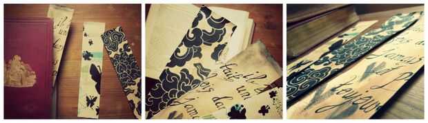 Por lo tanto, pensé podría mejorar mis posibilidades de encontrar un marcador haciendo algunos más (que probablemente he perdido por ahora) de mi hoja de cartón. Como usted probablemente sabe, no es un proceso muy complicado. Sólo cortar las tiras de cartulina y decorarlos con papel bonito, dibujos y solo lo que te apetezca. Para que se vean realmente vintage recomiendo les manchas ligeramente con pintura marrón o bolsitas de té.