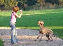 Cuando el perro oye esto deben subir sus oídos y sus ojos deben ser en usted; esperando un comando.