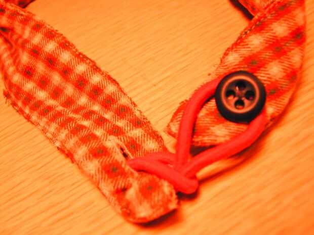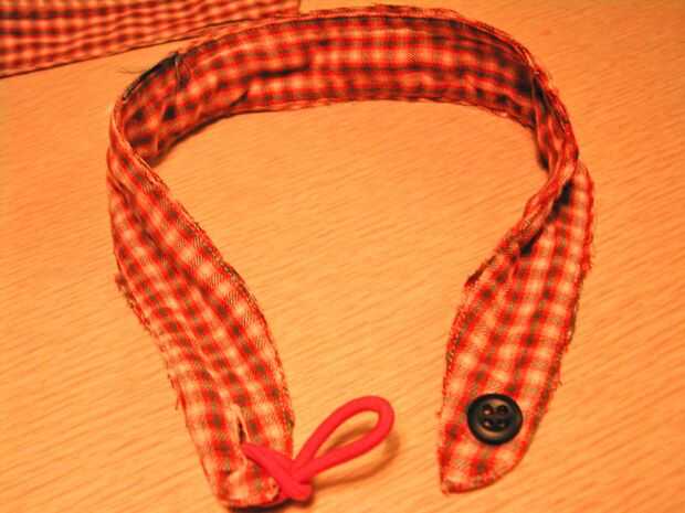 Deslice el lazo sobre el botón. Esto cerrar la diadema y le permiten estirar para comodidad y función. Lo hará único.