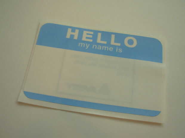 -Etiqueta engomada de la etiqueta nombre "Hola, mi nombre es..."