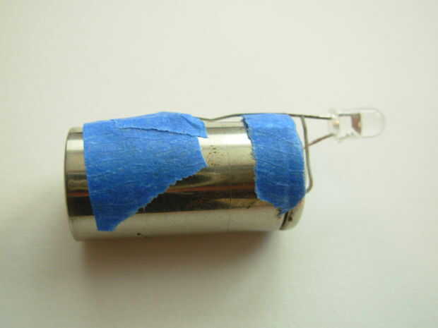 Con este conocimiento potente, empujará la uña del pulgar en el cable negativo del LED hasta que toque el lado de la batería. Si hiciste todo bien, el LED deberá encenderse.